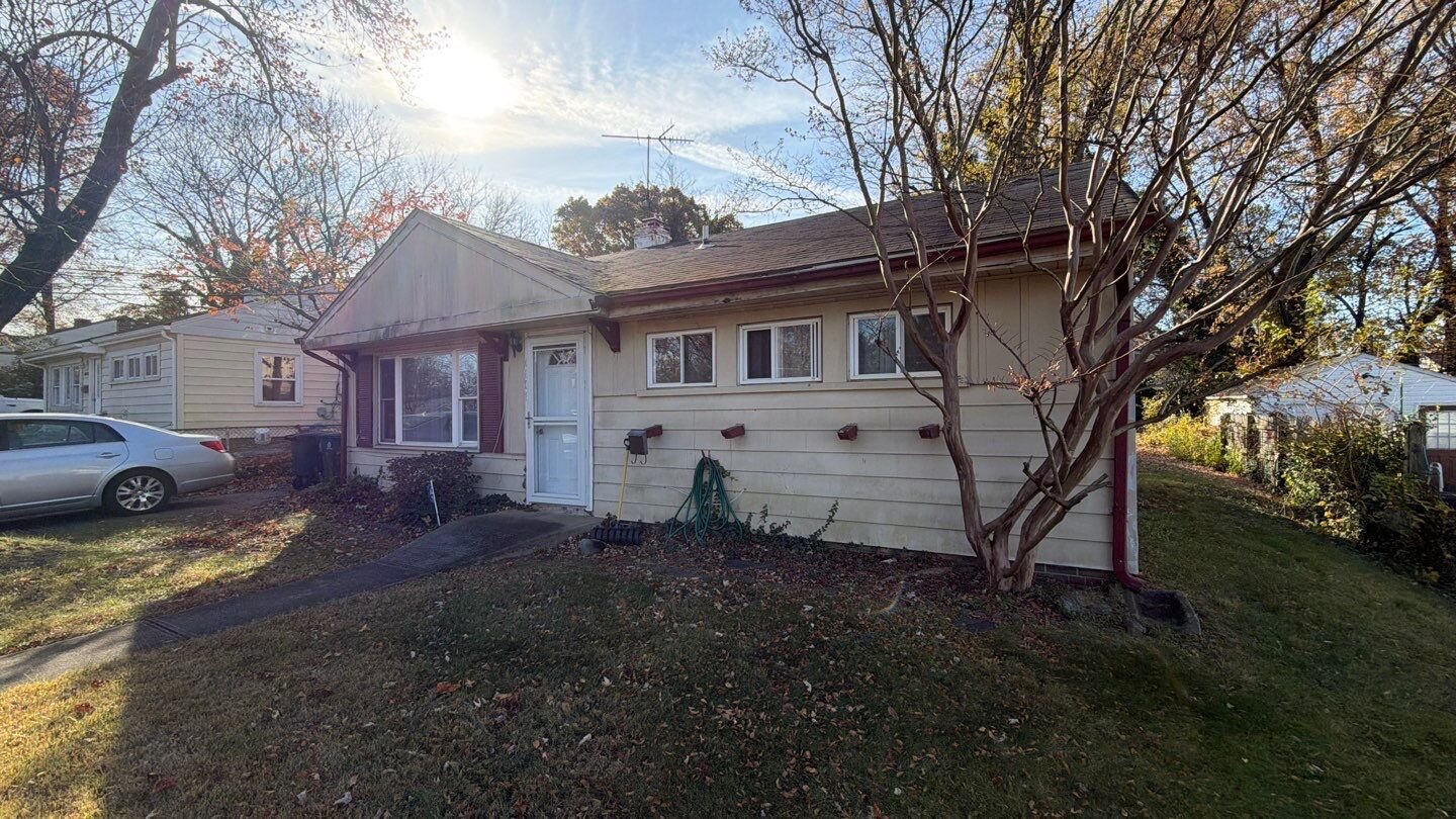 Prince George’s County, Hyattsville, MD; (Defense Heights subdivision) rambler with 1,075 sqft. 3 bedrooms; 1 bathroom. Public water/sewer. Gas heat/furnace. Central A/C. Driveway and carport. Lot size: 5,985 sqft. Tax assessment: $269,433